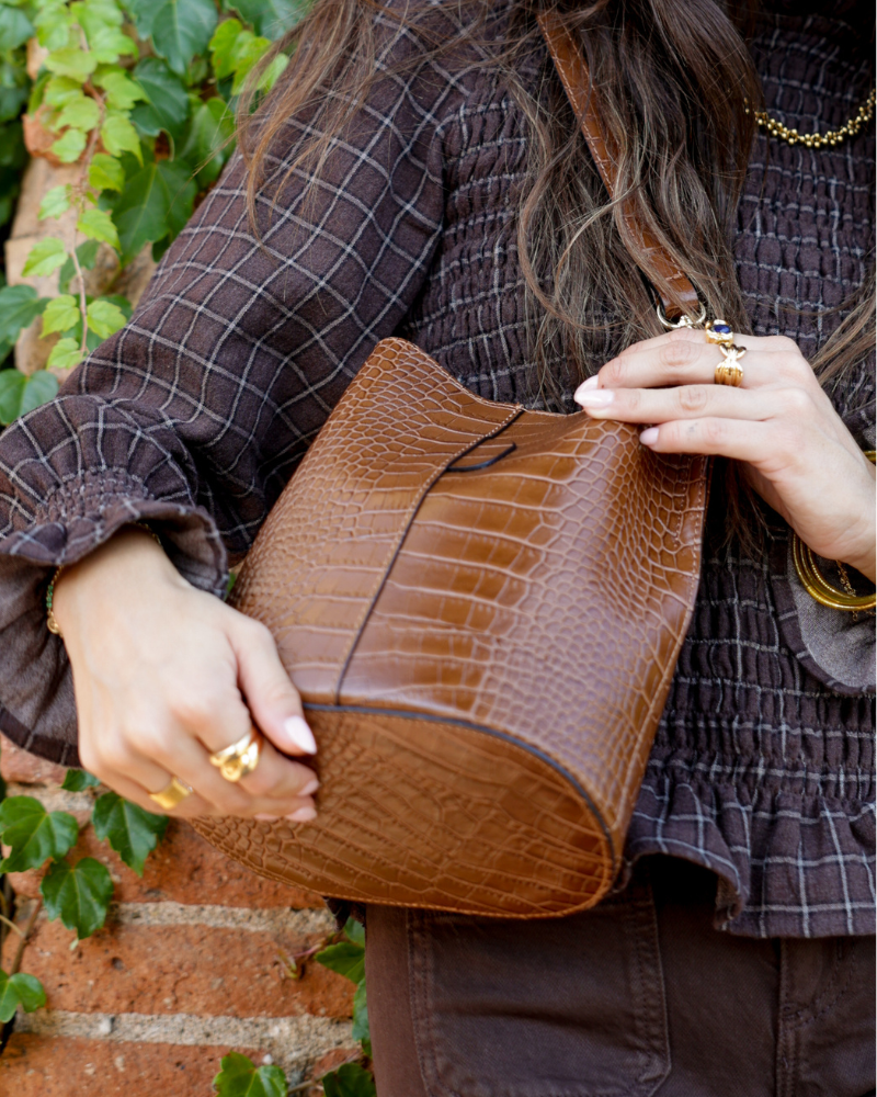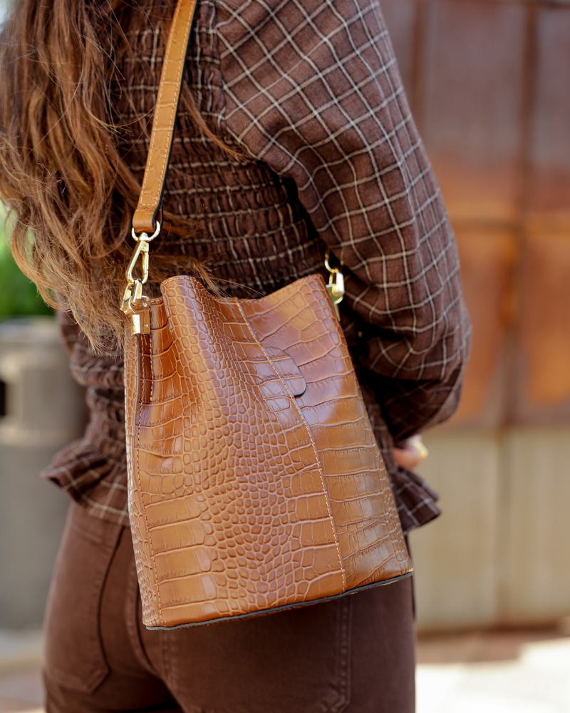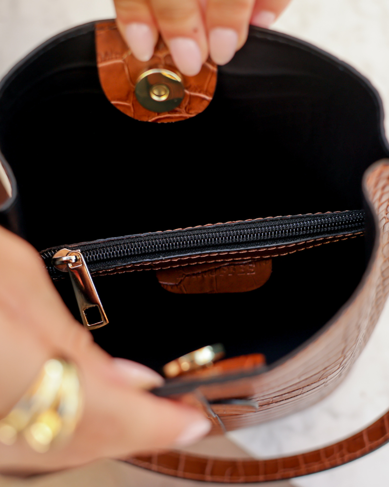 Αριάδνη – Καφέ τσάντα με κροκόδειλο